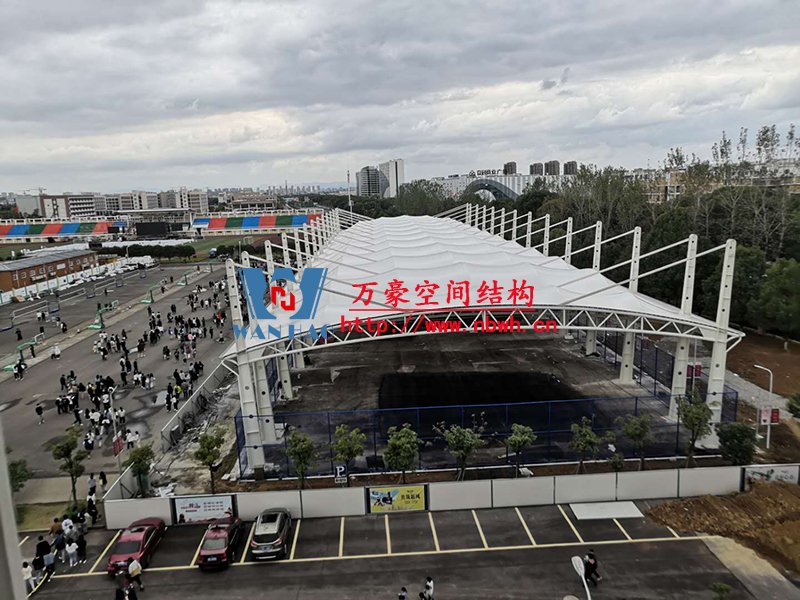 浙江紡織服裝職業技術學院東西校區運動場膜結構?項目位于浙江省寧波市,膜結構展開面積6000平米,由寧波萬豪空間結構工程有限公司承建。